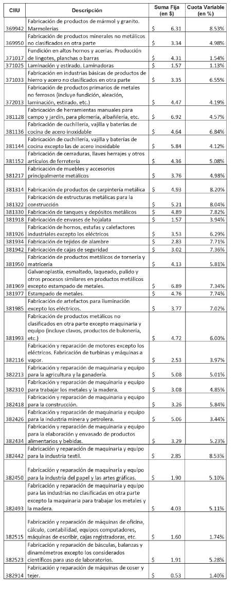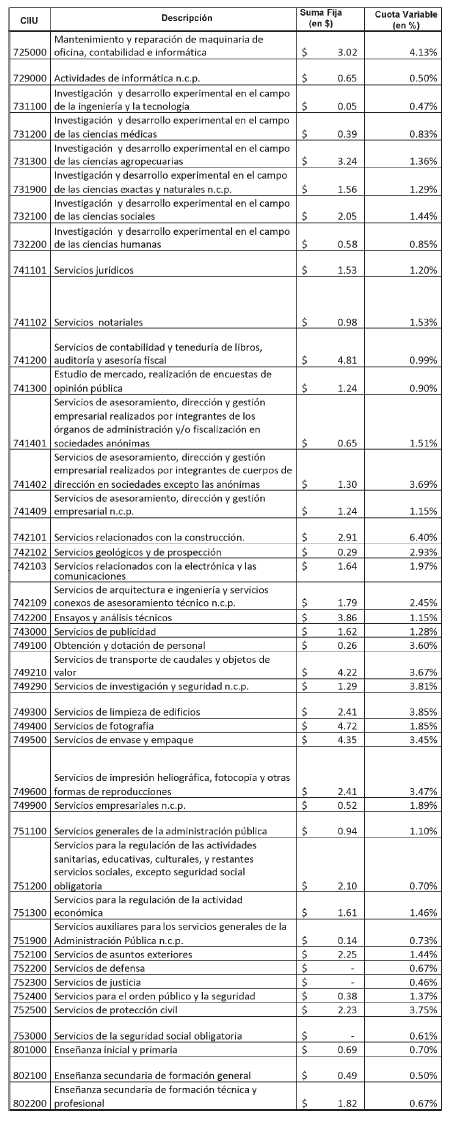 Suma fija y cuota variable según código de actividad,