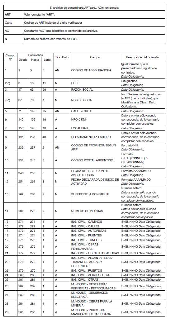 2.2. Descripción del archivo de Aviso de Obra.