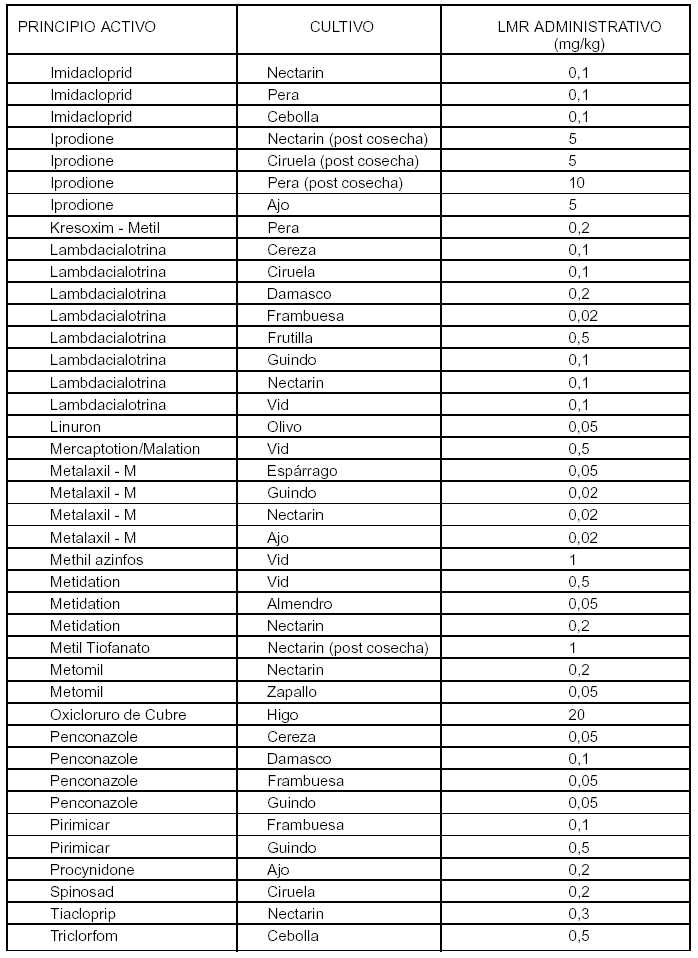 Que asimismo, conforme lo dispuesto por el Artículo 2º de la citada norma, las Ampliaciones de Uso y los Límites Máximos de Residuos Administrativos (LMR A) así otorgados tendrán una validez de CUATRO (4) años, contados a partir del 5 de enero de 2005. Durante ese lapso, los interesados en obtener las Ampliaciones de Uso y los Límites Máximos de Residuos definitivos (LMR), deberán dar cumplimiento a lo dispuesto en el Capítulo 15 de la Resolución ex-SAGPYA Nº 350/99.