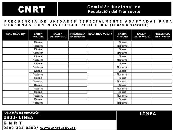 INSTRUCTIVO PARA COMPLETAR EL CARTEL DE FRECUENCIA DE UNIDADES ESPECIALMENTE ADAPTADAS PARA PERSONAS CON MOVILIDAD REDUCIDA.