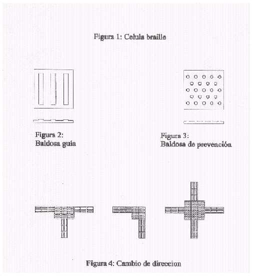 5.2.6.2. GABINETE Habrá al menos un local de estas características, destinado al uso de los profesionales que desarrollen actividades pedagógicas y sociales. Superficie mínima del local: 6 m2. Lado mínimo: 2 m. Equipamiento: mueble armario para material del sector, escritorio o mesa y dos sillas. 5.2.7. REQUISITOS ESPECIALES PARA SERVICIOS DESTINADOS A PERSONAS CON DISCAPACIDAD VISUAL Los requisitos necesarios a incorporar a la planta física, son aquellos que permitan al concurrente con discapacidad visual su orientación espacial, o sea el conocimiento de su posición física en relación con los objetos y/o locales de su entorno, permitiendo un mapa cognitivo del lugar para situarse en el mismo. El edificio debe disponer de señalamientos, clasificados según su objetivo, y se adecuaran a las características edilicias, funcionales, etc. del inmueble y del tipo o tipos de servicios que se ofrezcan. Generalidades: Orientadoras: Las señales visuales y táctiles, de orientación deberán estar localizadas en lugares accesibles, de tal manera que puedan ser examinadas tranquila y confortablemente (ejemplos: croquis, planos, modelos, carteles indicadores) Direccionales: Las señales direccionales deberán constituir una secuencia lógica desde el punto de partida hasta los diferentes puntos de destino, como así también indicar los medios de salida, en un volumen libre de riesgos (ejemplos: indicaciones de dirección en las circulaciones, salidas de emergencias, etc.) Informativas: Las señales informativas deberán dar cuenta de la proximidad de elementos o servicios de interés (ejemplos: aulas, gabinetes, sanitarios, ascensores, etc.) De advertencia: Las señales de advertencia deberán indicar la presencia de obstáculos, elementos de riesgo o alteraciones en el recorrido (ejemplos: señalización en pisos para indicar la existencia de escalones, de puertas de acceso a ascensores, rampas, etc.) De peligro: Las señales de peligro alertarán de un peligro cercano; deberán diferenciarse netamente del resto debiendo cumplir códigos normalizadores (ejemplos: un vacío, una escalera, áreas de alta tensión, etc) Señales de alarma: Las señales de alarma deberán alertar la inminencia de situaciones de emergencia y siniestro en general (aviso de bomba, incendio, explosión, etc.) Los señalamientos se materializan en táctiles; táctil en solados. Señalamientos táctiles (planos hápticos o en relieve) Táctiles: - Las señales táctiles deberán realizarse en relieve saliente, suficientemente contrastado, no lacerante y de dimensiones adecuadas para el elemento que las deba detectar: dedos, pies o bastón. - Las señales de percepción manual, en pared, deberán ubicarse a 1.20 m. a nivel del piso terminado. - En los carteles de lectura visual y táctil las letras, números y símbolos estarán en relieve sobresaliendo un milímetro del fondo, a fin de no perjudicar su legibilidad lateral, y se completará la información en braille. - Se colocarán en pasamanos de escaleras y rampas mensajes en braille para información y guía hacia lugares significativos como puestos de información, sanitarios, ascensores y locales de asistencia. - Cuando se requiera una orientación especial para personas ciegas, las señales táctiles se dispondrán también en pasamanos que acompañen los recorridos. - Las características de la señalización en pisos y planos hápticos para personas ciegas y disminuidas visuales se establecen en la Norma I.R.A.M. 111102-2 - Los letreros que identifican funciones permanentes (locales, sanitarios, aulas, quintas, salidas, etc.) deben tener letras en relieve y en braille, con determinado número y tipos de grafismos, perceptibles por el tacto y el resto de la visión. Señalización táctil y visual en solados Se instalará en los solados de los edificios y en los ámbitos exteriores o parquizados, zonas de textura diferenciada con relieve saliente y colores contrastantes para la exploración con el bastón largo como pautas de orientación y movilidad y con colores contrastantes para ser detectados por personas con disminución visual. Generalidades: Las señalizaciones en solados no deben presentar ningún peligro de resbalamiento o tropiezo y la estructura superficial debe ser de fácil limpieza. Para los ciegos se debe garantizar una buena posibilidad de diferenciación de la estructura superficial por el tacto a través del bastón largo blanco, y para los disminuidos visuales se debe utilizar contrate de color, buena iluminación y evitar el deslumbramiento por reflexiones. Materiales: Las señalizaciones en solados pueden realizarse con piezas de hormigón, mosaicos o placas cerámicas, metal, pétreos naturales u otros materiales. Los materiales deben ser de colores firmes, estables con el tiempo y con capacidad de resistencia a la influencia del medio ambiente. El comportamiento al fuego del material debe corresponder a la clase B DIN 4 102-1 El material empleado para proveer contraste debe ser parte integral de la superficie transitable. No se admiten materiales que obtienen su contraste a partir de pinturas o recubrimientos laminares. Ejecución: Las señalizaciones en solados se deben colocar al mismo nivel del revestimiento de solado circundante. El material debe ofrecer una buena resistencia al deslizamiento, que se verificará según la norma correspondiente. En piezas nuevas la resistencia al deslizamiento debe alcanzar como mínimo el valor de 45 unidades SRT (skid resistence test). En piezas usadas no puede tener valores menores a 35 unidas SRT. Franjas de guías para ciegos: Las franjas de guías para ciegos son señalizaciones en solados que indican la dirección de un camino, cuyas acanaladuras siempre deben estar orientadas en la dirección de la marcha. Características: El solado de guía esta constituido por baldosas texturadas que presentan barras en relieve de 5 mm+/- 1mm, de ancho de 32 mm +/- 4 mm, largo que depende del lado de