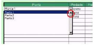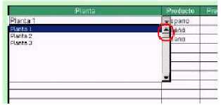Nota: Es probable, dependiendo de la versión de Excel, que al hacer click en el menú desplegable para elegir la planta, éste aparezca vacío, en ese caso lo que deberá hacer es ir al primer ítem de la lista haciendo click en la flechita "hacia arriba" como lo indica la siguiente figura: