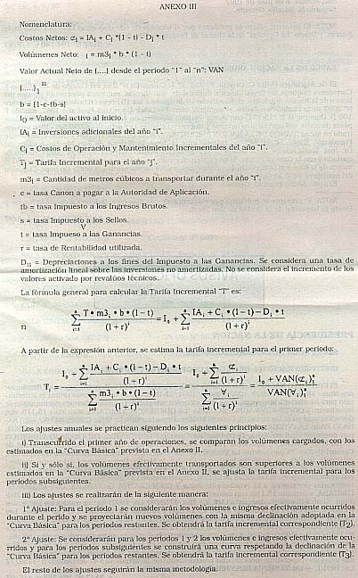 No incluye IVA. (1) TARIFA INCREMENTAL A SER ADICIONADA A LA TARIFA VIGENTE DE U$S/M3 1.00 APROBADA POR RESOLUCION S.E. Nº 150 DEL 16 DE DICIEMBRE DE 1992. ANEXO II PERIODOS CURVA BASICA (MILES DE M3)
