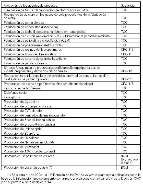 Anexo III: Lista de usos de sustancias controladas como agentes de procesos