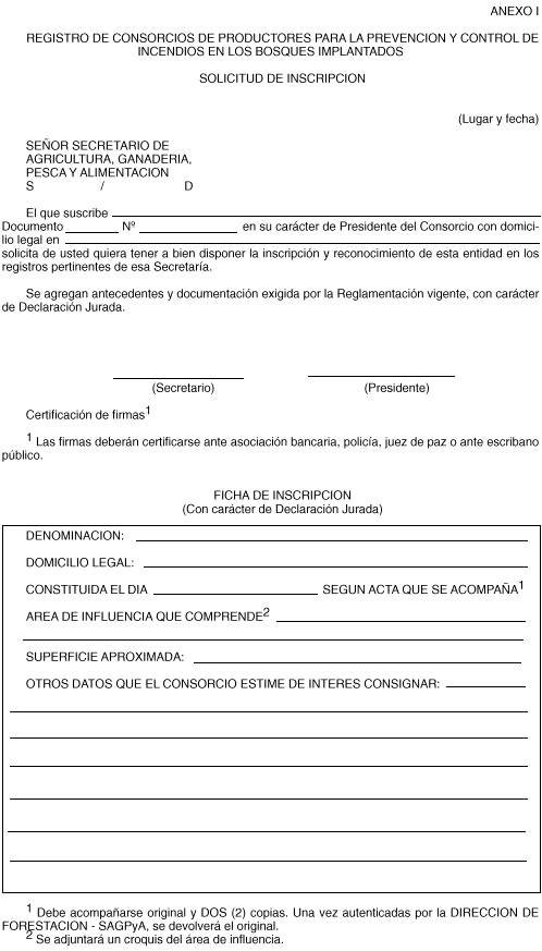 FORESTACIÓN Créase el Registro de Consorcios de Productores para la prevención y control de incendios en bosques implantados. Implementación de un Programa de Promoción para la constitución de los mencionados consorcios. Formularios para la inscripción.