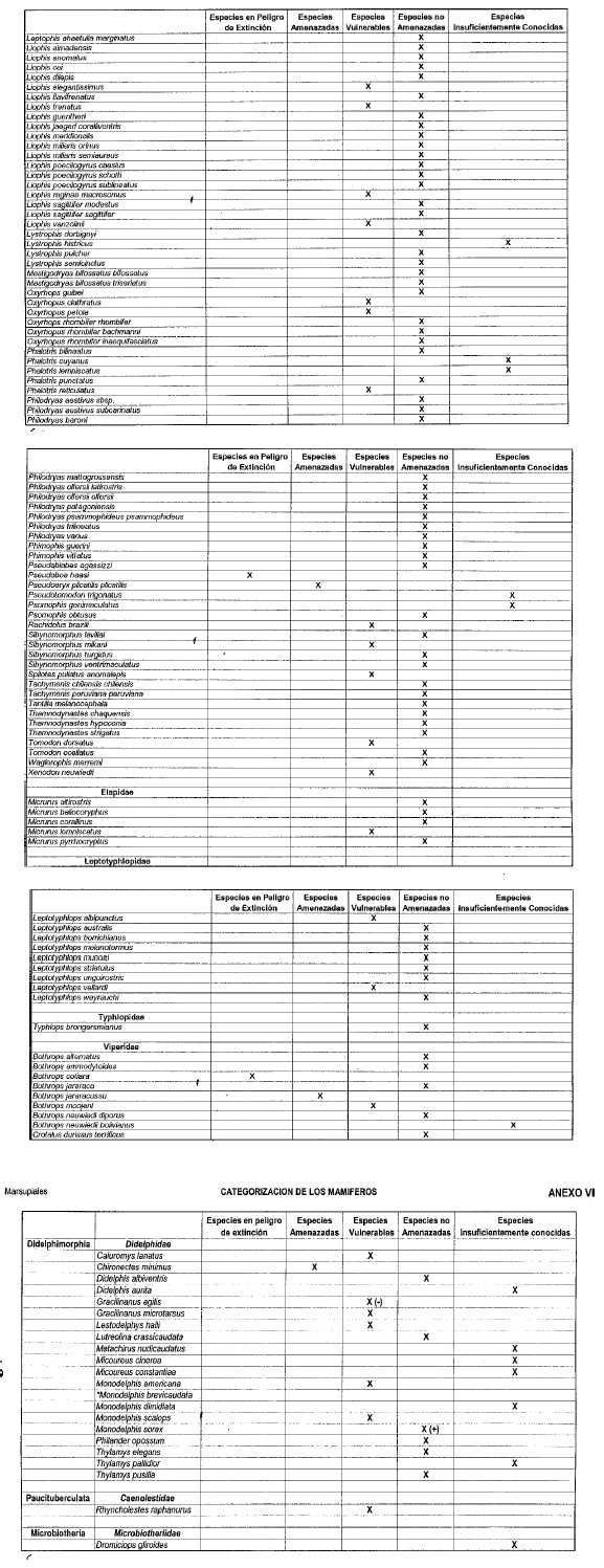 CONSERVACIÓN DE LA FAUNA Determínanse los nuevos índices de calificación de las especies de Anfibios, Reptiles y Mamíferos autóctonos de acuerdo a lo establecido en el artículo 4º del Decreto 666/97.