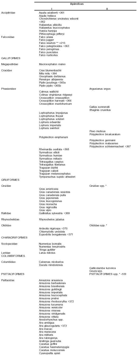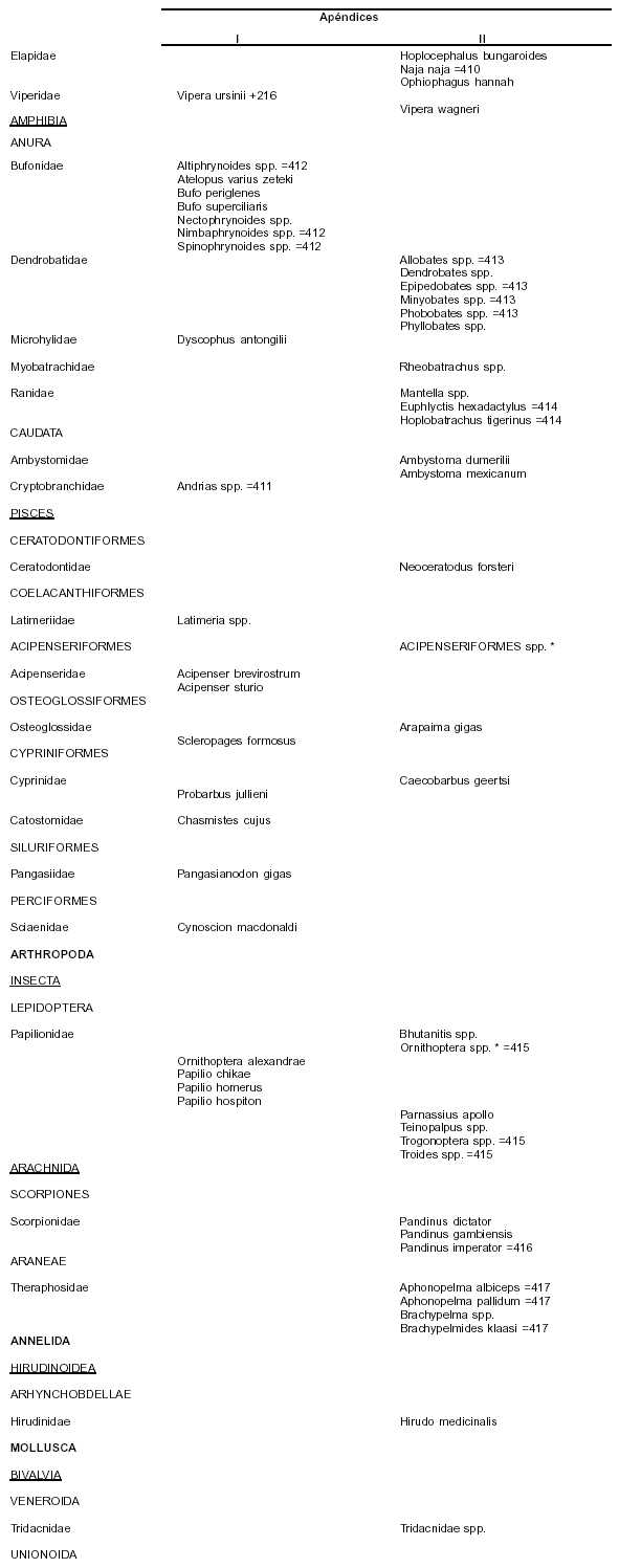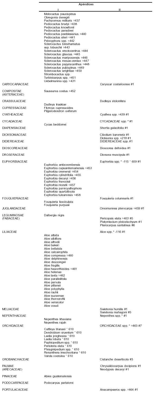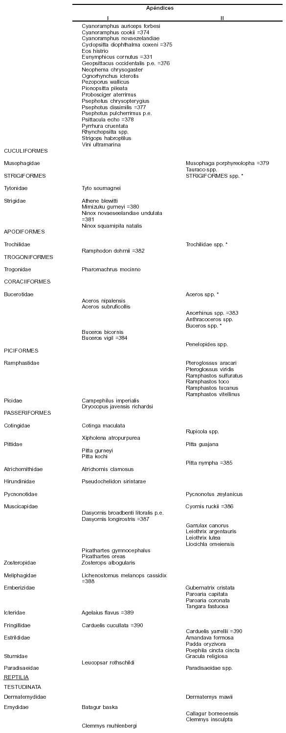 1. Las especies que figuran en estos Apéndices están indicadas: