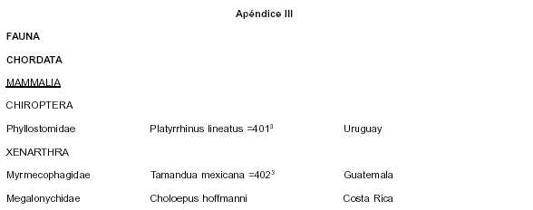 2. El signo (+) seguido de un número colocado junto al nombre de una especie significa que únicamente las poblaciones geográficamente aisladas de dicha especie están incluidas en el Apéndice III como sigue: