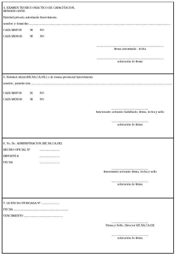 CAZA DEPORTIVA Establécese que el Registro Nacional de Cazadores Deportivos funcionará en el ámbito de la Dirección de Flora y Fauna Silvestres y tendrá a su cargo la emisión de la Licencia Nacional de Cazador Deportivo.