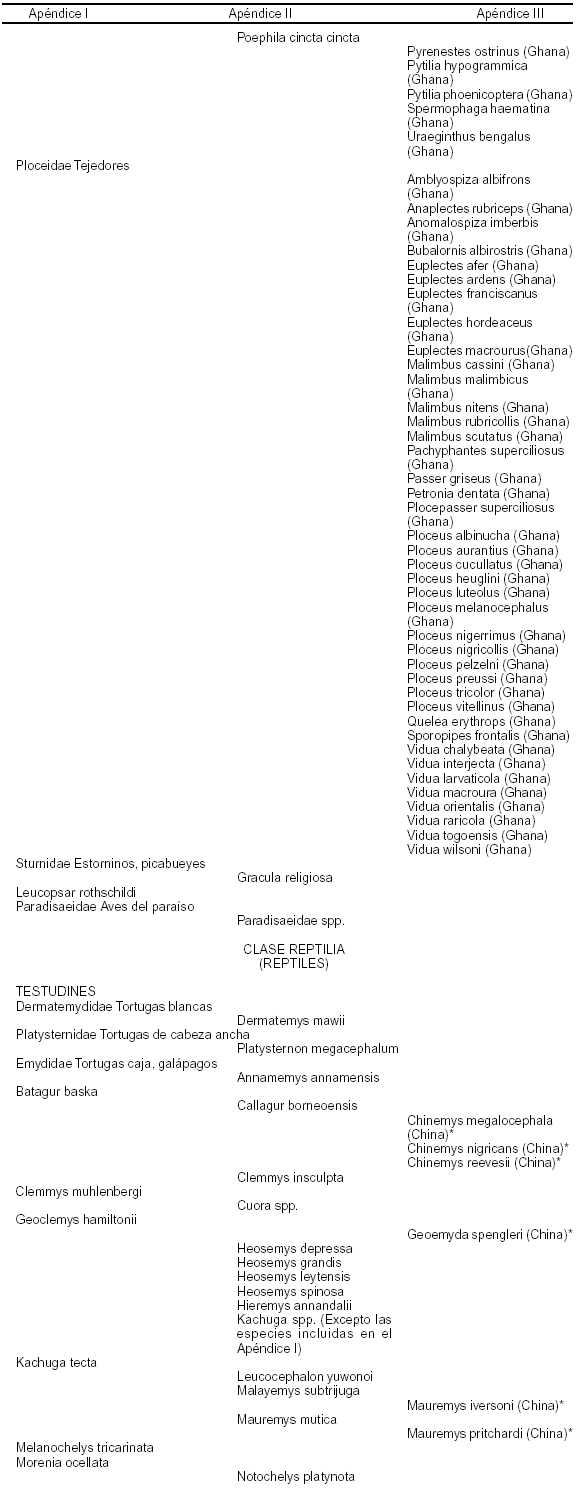 CONSERVACIÓN DE LA FAUNA Y FLORA SILVESTRE Establécense modificaciones a los Apéndices de la Convención sobre el Comercio Internacional de Especies Amenazadas de Fauna y Flora Silvestre, adoptadas en la Decimotercera Reunión de la Conferencia de las Partes realizada en Bangkok.
