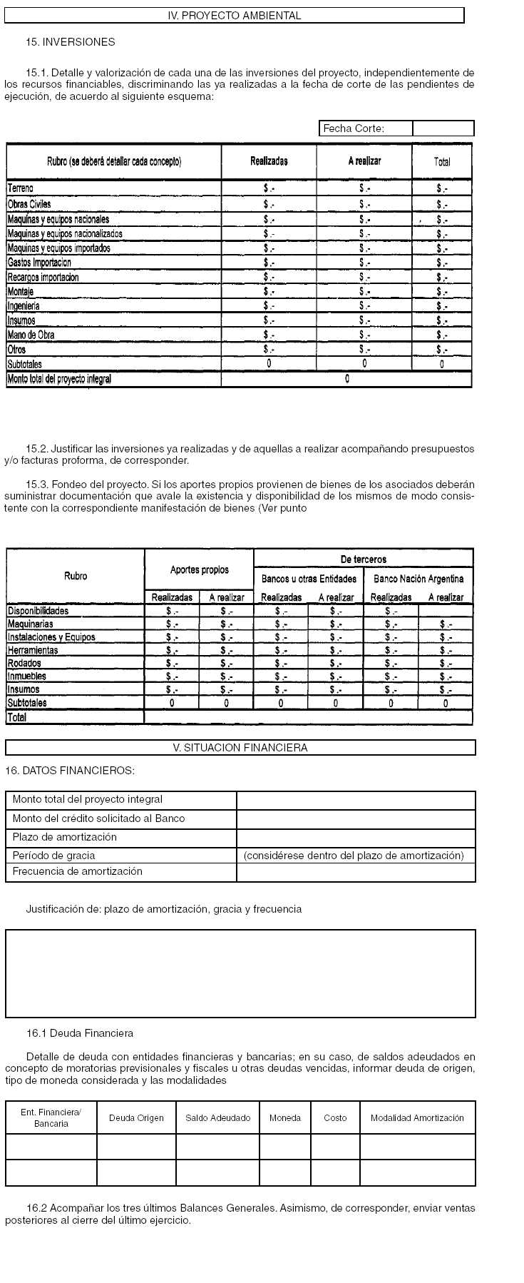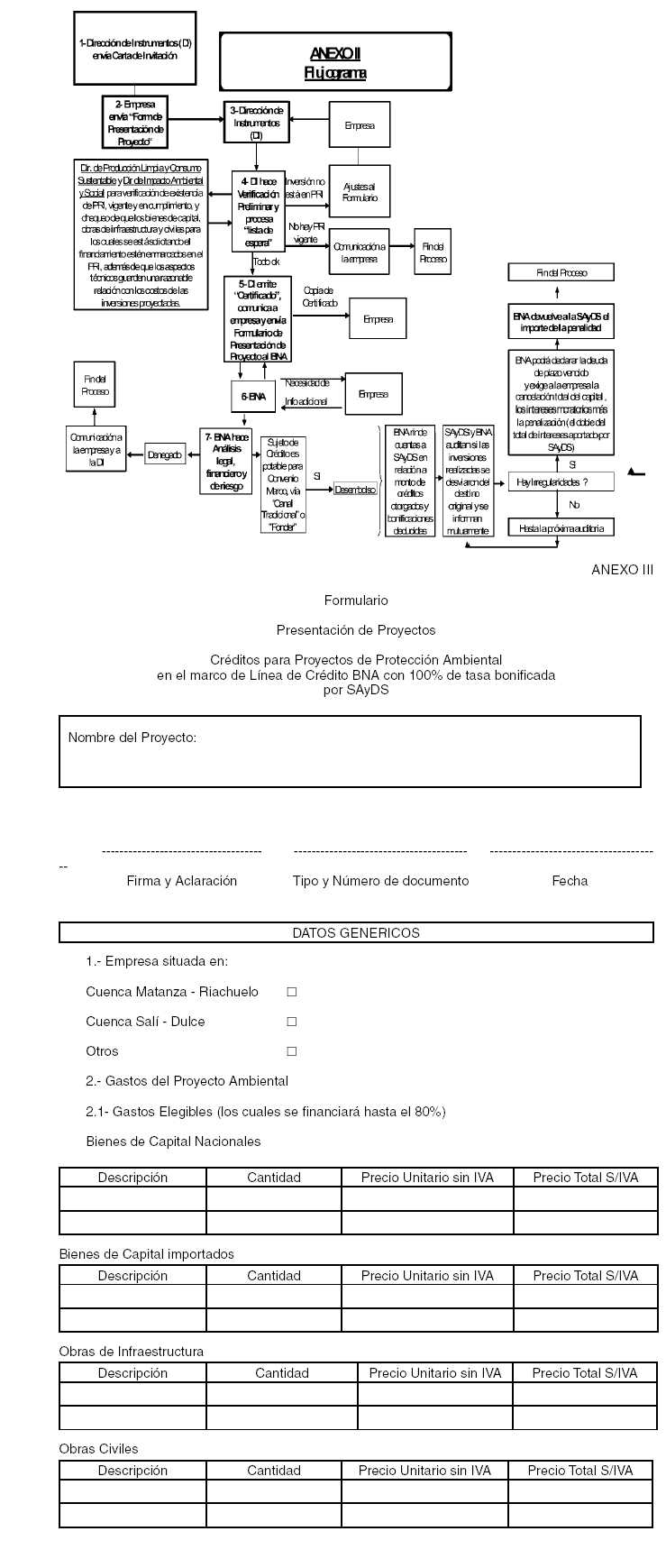 Séptimo: Se incorporan a los efectos de la viabilización de la instrumentación del "CONVENIO" los siguientes Anexos: I) Glosario, II) Flujograma, III) Formulario de presentación de proyectos y IV) Modelo de "Certificado de Aptitud del Proyecto para aplicar a la Línea de Crédito BNA con 100% de tasa bonificada por SAyDS".
