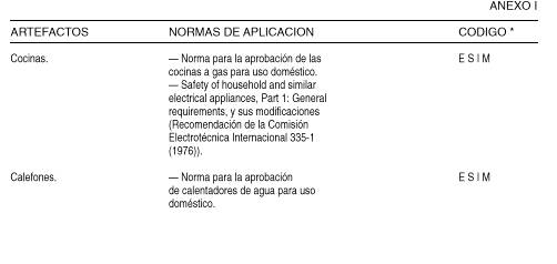 Art. 1º — Sólo podrán comercializarse en el país los artefactos, equipos, accesorios y recipientes mencionados en el ANEXO I, que en SEIS (6) planillas forma parte de la presente Resolución, y que utilizan gas natural, gas licuado, o cualquier otro combustible gaseoso distribuido por red o envasado, cuando cumplan con los requisitos esenciales de seguridad que se detallan en el ANEXO II, que en CINCO (5) planillas forma parte de la presente Resolución. A este efecto se considerará como comercialización a toda transferencia, a cualquier título, aún como parte de un bien mayor. Art. 2º — Los fabricantes, importadores, distribuidores, mayoristas y minoristas de los productos alcanzados por la presente Resolución, deberán hacer certificar o exigir la certificación según el caso, del cumplimiento de los requisitos esenciales de seguridad mencionados en el Artículo 1º, mediante una certificación de producto por marca de conformidad, otorgada por un organismo de certificación autorizado por el ENTE NACIONAL REGULADOR DEL GAS, la SECRETARÍA DE ENERGIA, o ambos, según corresponda, y reconocido por la DIRECCION NACIONAL DE COMERCIO INTERIOR, dependiente de la SUBSECRETARIA DE COMERCIO INTERIOR de esta Secretaría, con arreglo a las Resoluciones S.I.C. y M. Nº 123 del 3 de Marzo de 1999 y Nº 431 del 28 de Junio de 1999 y su modificatoria Resolución S.I.C. y M. Nº 640 del 1 de Septiembre de 1999, en lo que no se opongan a lo dispuesto por la presente Resolución. Dichos requisitos de seguridad se considerarán plenamente asegurados si se satisfacen las exigencias de seguridad establecidas en las normas citadas en el mencionado ANEXO I. Corresponde al ENTE NACIONAL REGULADOR DEL GAS, a la SECRETARIA DE ENERGIA, o a ambos, según el caso, el dictado y actualización de las normas y especificaciones citadas en el ANEXO I, como así también proponer a esta Secretaría la actualización del listado de productos incluidos en dicho ANEXO. La implementación de esta exigencia seguirá el procedimiento y los plazos establecidos en el ANEXO III, que en DOS (2) planillas forma parte de la presente Resolución. En cumplimiento de las diferentes etapas de aplicación de la presente Resolución, las certificaciones correspondientes a los productos alcanzados deberán ser presentadas ante la DIRECCION NACIONAL DE COMERCIO INTERIOR. Las entidades certificadoras reconocidas deberán comunicar fehacientemente a este último organismo las altas y bajas producidas en los respectivos listados de productos por ellas certificados, dentro de los DIEZ (10) días hábiles de producidas. La certificación de un producto incluirá todas las partes, piezas, accesorios o recipientes que se encuentren formando parte del producto en cuestión. Los productos certificados según lo establecido precedentemente, además del logotipo indeleble de identificación de modelo aprobado, que actualmente exige el ENTE NACIONAL REGULADOR DEL GAS en su caso, exhibirán el sello de seguridad a establecer oportunamente por esta Secretaría. Art. 3º — La DIRECCION NACIONAL DE COMERCIO INTERIOR, con carácter transitorio y durante los primeros NOVENTA (90) días de vigencia de la presente Resolución, podrá reconocer organismos de certificación que no hayan cumplido los requisitos de acreditación establecidos por el artículo 2º de la Resolución S.I.C. y M. Nº 431/99. Es condición necesaria para mantener el reconocimiento mencionado la obtención, por parte de las entidades alcanzadas, de su acreditación ante el organismo de acreditación perteneciente al SISTEMA NACIONAL DE NORMAS, CALIDAD Y CERTIFICACION, dentro del plazo de UN (1) año a partir del respectivo reconocimiento por la DIRECCION NACIONAL DE COMERCIO INTERIOR. Art. 4º — La DIRECCION GENERAL DE ADUANAS, dependiente de la ADMINISTRACION FEDERAL DE INGRESOS PUBLICOS, autorizará la importación para el consumo de los artefactos, equipos, accesorios y recipientes que utilicen combustibles gaseosos a que hace referencia la presente resolución, previa verificación del cumplimiento de los requisitos establecidos en el Artículo 2º. A tal efecto la DIRECCION NACIONAL DE COMERCIO INTERIOR proveerá a la DIRECCION GENERAL DE ADUANAS la información necesaria. (Nota Infoleg: Por art. 1° de la Resolución N°101/2001 de la Secretaría de la Competencia, la Desregulación y la Defensa del Consumidor B.O. 5/9/2001, se difiere hasta el 1° de abril de 2001 la obligatoriedad de certificación por marca de conformidad para los artefactos, equipos, accesorios y recipientes para combustibles gaseosos.) Art. 5º — La certificación otorgada según lo establece la presente Resolución no exime a los responsables de los productos alcanzados, del cumplimiento de reglamentaciones vigentes en otros ámbitos ni de su responsabilidad por el cumplimiento de lo indicado en el Artículo 1º de la presente Resolución. En los casos en que los responsables de los productos, posteriormente a la introducción de éstos en el mercado, tomen conocimiento de un apartamiento en el cumplimiento de las respectivas normas de seguridad, que los tornan peligrosos, deberán comunicar inmediatamente tal circunstancia a las autoridades competentes y a los consumidores mediante anuncios publicitarios que garanticen la difusión necesaria a criterio de la Autoridad de Aplicación. Art. 6º — La DIRECCION NACIONAL DE COMERCIO INTERIOR evaluará el desenvolvimiento de las entidades certificadoras en cuanto al cumplimiento de las disposiciones de las cuales resulte autoridad de aplicación. El ENTE NACIONAL REGULADOR DEL GAS y la SECRETARIA DE ENERGIA evaluarán el desenvolvimiento de las entidades certificadoras en lo atinente al cumplimiento de las condiciones según las cuales fueron por aquéllos autorizadas, como así también efectuarán el seguimiento de dichas entidades certificadoras en lo que hace al cumplimiento de las disposiciones acerca de las cuales ambos organismos so