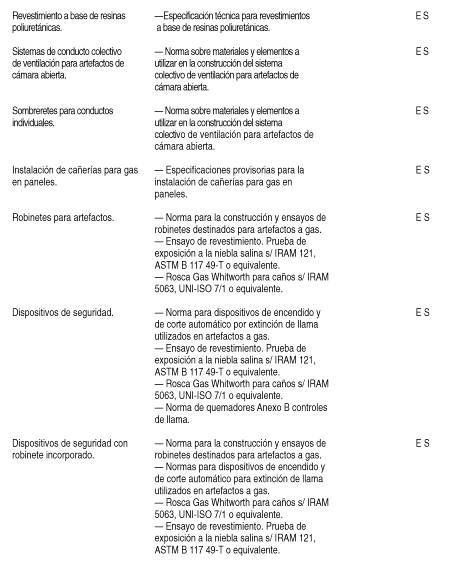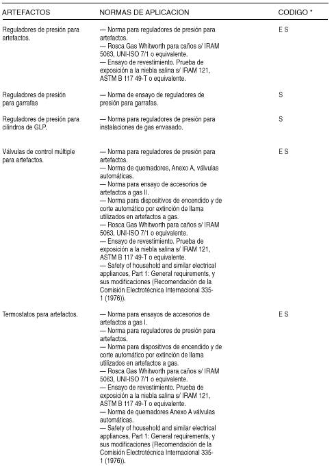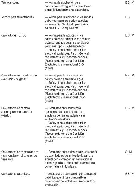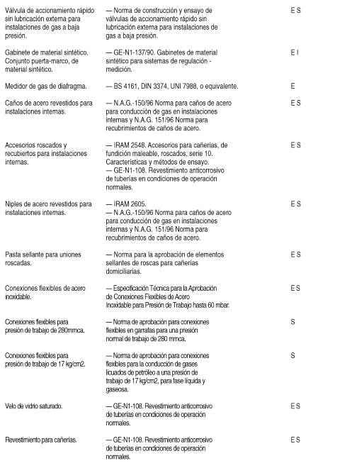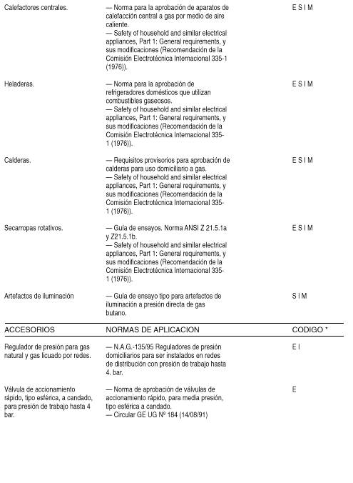 3. DISEÑO Y CONSTRUCCION 3.1. Generalidades 3.1.1. Los elementos se fabricarán de manera que, cuando se utilicen en condiciones normales de funcionamiento, no se produzca ningún desajuste, deformación, rotura o desgaste que pueda representar una merma de la seguridad. 3.1.2. La condensación que pueda producirse al poner en marcha el artefacto o equipo o durante su funcionamiento, no deberá disminuir su seguridad. 3.1.3. El diseño y la fabricación de los elementos deberán ser tales que los riesgos de explosión en caso de incendio de origen externo, sean mínimos. 3.1.4. Los elementos se diseñarán y fabricarán de manera que impidan la entrada inadecuada de agua y de aire en el circuito de gas. 3.1.5. En caso de fluctuación, normal o anormal, de la energía auxiliar, el artefacto deberá continuar funcionando de forma totalmente segura. 3.1.6. En caso de interrupción de la alimentación de energía auxiliar y de reanudación de dicha alimentación, ellas no deberán constituir fuente de peligro. 3.1.7. El diseño y la fabricación de los elementos deberán ser tales que se prevengan los riesgos de origen eléctrico. Este requisito se considerará satisfecho cuando se cumplan, en su ámbito de aplicación, los objetivos de seguridad respecto a los peligros eléctricos previstos en la Resolución SICyM Nº 92/98. 3.1.8. Todas las partes del elemento sometidas a presión o a temperatura deberán resistir, sin deformarse hasta el punto de comprometer la seguridad, las tensiones mecánicas y térmicas a que estén sometidas. 3.1.9. El elemento deberá diseñarse y ser construido de manera que el fallo de uno de sus dispositivos de seguridad, de control o de regulación, no constituya un peligro. 3.1.10. Si un elemento está equipado con dispositivos de seguridad y de regulación, los dispositivos de regulación funcionarán sin obstaculizar el funcionamiento de los de seguridad. 3.1.11. Todos los componentes de un artefacto que hayan sido instalados o ajustados en él en la fase de fabricación, y que no deban ser manipulados por el usuario ni por el instalador, irán adecuadamente protegidos para evitar su modificación o accionamiento, sean éstos voluntarios o accidentales. 3.1.12. Las manecillas u órganos de mando y de regulación deberán identificarse de manera precisa e incluir todas las indicaciones útiles para evitar cualquier falsa maniobra. Estarán concebidos de forma que se impidan las manipulaciones involuntarias. 3.2. Liberación de gas sin quemar 3.2.1. Los artefactos deberán fabricarse de manera que la cantidad de gas liberado sea siempre una cantidad que no entrañe ningún riesgo. 3.2.2. Todo artefacto deberá fabricarse de manera que la liberación de gas durante el encendido, el reencendido, y tras la extinción de la llama, sea lo suficientemente limitada como para evitar la acumulación peligrosa de gas sin quemar dentro del artefacto. 3.2.3. Los artefactos deberán estar provistos de un dispositivo específico que evite una liberación peligrosa de gas no quemado. 3.3. Encendido Todo artefacto estará fabricado de manera que, en condiciones normales de funcionamiento el encendido y el reencendido se realicen con suavidad. 3.4. Combustión 3.4.1. Todo artefacto deberá fabricarse de manera que, en condiciones normales de utilización, se garantice la estabilidad de la llama y los productos de combustión no contengan concentraciones inaceptables de sustancias nocivas para la salud. 3.4.2. Todo artefacto deberá fabricarse de manera que, en condiciones normales de utilización, no se produzca un escape imprevisto de productos de combustión. 3.4.3. Todos los artefactos que vayan unidos a un conducto de evacuación de los productos de combustión deberán estar construidos de modo que, en caso de tiro defectuoso de dicho conducto, no se produzcan escapes de productos de combustión hacia el local en que se utilicen. 3.4.4. Los artefactos de calefacción individuales y los calentadores de agua no deberán dar lugar a una concentración de monóxido de carbono en el local en que se utilicen que pueda presentar riesgos para la salud de las personas expuestas en función del tiempo de exposición previsible de dichas personas. 3.5. Utilización racional de la energía Todo artefacto deberá fabricarse de manera que se garantice una utilización racional de la energía acorde con el estado de desarrollo de la técnica y que tenga en cuenta los aspectos de seguridad. 3.6. Temperaturas 3.6.1. Las partes de un artefacto que vayan a estar próximas al suelo u otras superficies no deberán alcanzar temperaturas que entrañen peligro para su entorno. 3.6.2. La temperatura de los botones y mandos de regulación destinados a ser manipulados no deberán superar valores que entrañen peligro para el usuario. 3.6.3. La temperatura superficial de las partes externas de un artefacto, excepción hecha de las superficies o partes que participen en la función de transmisión del calor, no alcanzará, en condiciones normales de funcionamiento, valores que entrañen peligro para el usuario, y en particular para los niños. 3.7. Alimentos y agua para usos sanitarios Sin perjuicio de lo dispuesto por toda otra normativa sobre la materia, los materiales y componentes utilizados en la construcción de los elementos que puedan entrar en contacto con alimentos o agua para usos sanitarios no deberán reducir la calidad de dichos alimentos o agua.