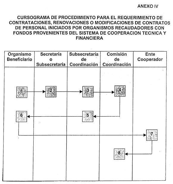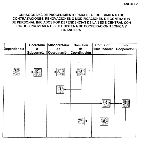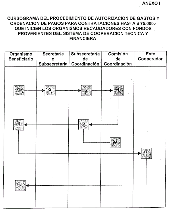 ARTICULO 1º — Apruébanse los procedimientos destinados a la aprobación de requerimientos descriptos en los Anexos I al V inclusive, que forman parte integrante de la presente Resolución, referentes a las contrataciones de personal y bienes o servicios hasta PESOS SETENTA Y CINCO MIL ($ 75.000.-), que los Organismos Beneficiarios requieran a los Entes Cooperadores en virtud de lo establecido en las Leyes 17.050, 23.283 y 23.412.