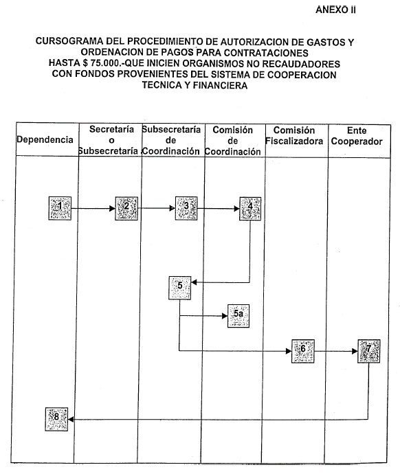 ARTICULO 4° — Para la contratación de bienes o servicios no personales que superen los PESOS SETENTA Y CINCO MIL ($ 75.000.-) se deberán cumplimentar los mismos trámites que los descriptos en el Anexo I, en cuanto a la verificación de fondos disponibles y presentación de especificaciones técnicas por parte del Organismo Beneficiario (en este caso "Pliego de Bases y Condiciones") y ser elevado para su análisis al señor SUBSECRETARIO DE COORDINACION, el que tendrá la facultad de constituir una Comisión de Evaluación y Seguimiento, a fin de hacer observar en la etapa preparatoria posterior y su aprobación hasta la adjudicación, que se incorporen las siguientes pautas a las normas o modalidades que reglen las contrataciones del Ente Cooperador designado: