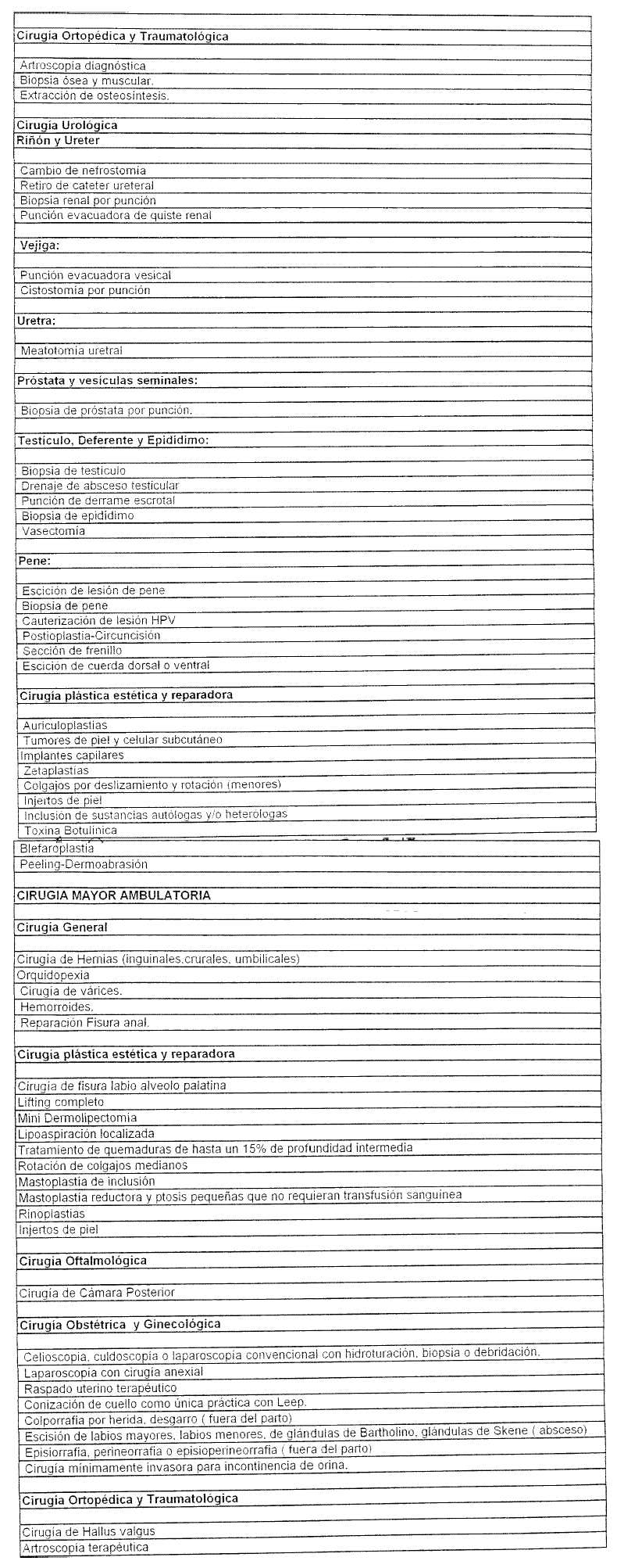 Que ante el incremento de procedimientos quirúrgicos ambulatorios, es necesario precisar cuales de ellos y en que ámbito es posible su realización, teniendo en cuenta los parámetros establecidos a nivel internacional.