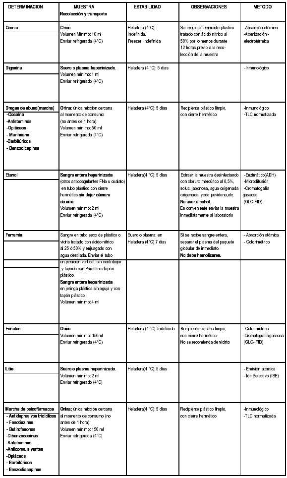 En el presente documento se plantean distintos aspectos del análisis toxicológico, desde los estrictamente técnicos como criterios sobre selección, preparación y conservación de las muestras, hasta los aspectos legales asociados a los análisis como cadena de custodia y confidencialidad de los resultados. Se han agregado también recomendaciones sobre la forma óptima de funcionamiento de un laboratorio que vaya a realizar este tipo actividad.