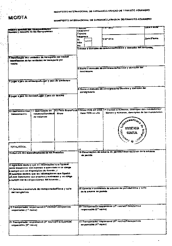 PROTOCOLO ADICIONAL AL ACUERDO DE TRANSPORTE FLUVIAL POR LA HIDROVIA PARAGUAY-PARANA (Puerto de Cáceres - Puerto de Nueva Palmira) SOBRE NAVEGACION Y SEGURIDAD Los Plenipotenciarios de la República Argentina, de la República de Bolivia, de la República Federativa del Brasil, de la República del Paraguay y de la República Oriental del Uruguay, debidamente autorizados por sus respectivos Gobiernos, según poderes otorgados en buena y debida forma, convienen en suscribir el presente Protocolo Adicional al Acuerdo de Transporte Fluvial por la Hidrovía Paraguay-Paraná. TITULO I DISPOSICIONES GENERALES Artículo 1. — Objeto. Las disposiciones de este protocolo y sus reglamentos complementarios serán aplicables sólo a las embarcaciones de la Hidrovía, a excepción de las normas comprendidas en el Título VII, las cuales serán de aplicación a todos los buques y embarcaciones que utilicen la misma. Artículo 2. — Régimen sancionatorio. Los países signatarios adoptarán un régimen sancionatorio único aplicable a las infracciones cometidas a las normas del presente Protocolo y sus reglamentos complementarios. Artículo 3. — Adaptación de instrumentos internacionales. Los países signatarios establecerán un régimen único de aplicación de cada convenio o instrumento internacional adoptado en este Protocolo cuando consideren necesario su adecuación al ámbito fluvial. Sin perjuicio de ello, dichos convenios serán aplicados hasta la aprobación del régimen citado. TITULO II NORMAS DE SEGURIDAD RELATIVAS A LAS EMBARCACIONES Y A LA CARGA CAPITULO I Luces y Marcas Artículo 4. — Régimen Normativo. Se adopta, en lo que a Luces y Marcas se refiere, el Convenio sobre el Reglamento Internacional para Prevenir los Abordajes (COLREG, Londres, 1972). CAPITULO II Certificados de Seguridad Artículo 5. — Emisión del Certificado. Los países signatarios deciden adoptar, para la emisión del Certificado de Seguridad de la Navegación, el formato que se agrega como Apéndice I. Artículo 6. — Régimen de Inspecciones. Los países signatarios adoptarán un reglamento único simplificado para la inspección de las embarcaciones de la Hidrovía, que garantice el cumplimiento de condiciones mínimas de seguridad, debiendo contemplar dicho documento las especialidades de casco, máquinas, armamento, electricidad y equipos de comunicación así como la inspección inicial. Artículo 7. — Expedición del Certificado. El Certificado de Seguridad de la Navegación será expedido por la autoridad competente del Estado de la bandera de la embarcación, conforme a los plazos que se establezcan en el reglamento único señalado en el artículo precedente. Los Certificados emitidos por las sociedades de clasificación reconocidas en el ámbito internacional, serán válidos en la Hidrovía, previo convenio de dichas sociedades con la autoridad. Artículo 8. — Caducidad del Documento. Operará la caducidad del certificado de Seguridad de la Navegación cuando expire el plazo de validez o se comprobare la pérdida de las condiciones de seguridad de la embarcación o fuere eliminada de la Matrícula Nacional. Artículo 9. — Responsabilidad. La autoridad competente de cada país signatario será responsable de la verificación del cumplimiento de esta normativa, sin perjuicio de la responsabilidad del propietario, armador o su representante legal por el incumplimiento del presente régimen. CAPITULO III Seguridad de Embarcaciones Tanques Artículo 10. — Régimen Normativo. La seguridad de embarcaciones tanques se regirá de acuerdo a las disposiciones previstas, para el efecto, en el Convenio Internacional para la Seguridad de la Vida Humana en el Mar (Londres, 1974, sus Protocolos y Enmiendas). Los países signatarios acordarán simplificaciones respecto de las embarcaciones no propulsadas o menores de 500 toneladas de arqueo bruto. CAPITULO IV Arqueo de Embarcaciones y Asignación de Francobordo Artículo 11. — Arqueo de Embarcaciones. Los países signatarios deciden adoptar para el arqueo de las embarcaciones el Convenio Internacional sobre Arqueo de Buques (Londres, 1969). Artículo 12. — Francobordo. Los países signatarios adoptarán y emitirán un documento único de francobordo para embarcaciones de la Hidrovía. El plazo de validez en ningún caso excederá el del Certificado de Seguridad de la Navegación. Artículo 13. — Reglamento. Los países signatarios elaborarán un reglamento único para la asignación de francobordo para las embarcaciones de la Hidrovía, a ser aplicados por las autoridades competentes de los países signatarios. CAPITULO V Seguridad de la Carga SECCION 1 Disposición General Artículo 14. — Reglamento. Los países signatarios podrán elaborar un reglamento único para la seguridad de las cargas transportadas no normadas en el presente Capítulo. Artículo 15. — Responsabilidades. Las autoridades competentes de los países signatarios verificarán el cumplimiento de lo dispuesto en la presente normativa. SECCION 2 Transporte de Mercancías sobre Cubierta Artículo 16. — Certificado de Troja. Todas las embarcaciones que transporten carga sobre cubierta, deberán estar autorizadas por la autoridad competente del Estado del pabellón de la embarcación, la que emitirá un certificado de troja, por sí o por delegación. El mismo tendrá en consideración la incidencia de la carga en la estabilidad de la embarcación, la resistencia de la zona de apoyo, la accesibilidad, el trincado de las mercancías y la incidencia de éstas en la visibilidad. Artículo 17. — Régimen Normativo. Los países signatarios adoptarán un reglamento único para el transporte de mercancías sobre cubierta. Hasta tanto el reglamento no sea elaborado no podrán transportarse mercancías sobre cubierta en: a) Embarcaciones del tipo tanque, cuando transporte productos con punto de inflamación menor de 70 grados C; b) Embarcaciones que transporten más de doce pasajeros