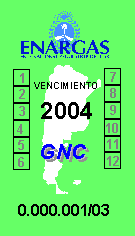 Documento N° 1: OBLEA DE VIGENCIA DE LA HABILITACION DEL EQUIPO PARA GNC