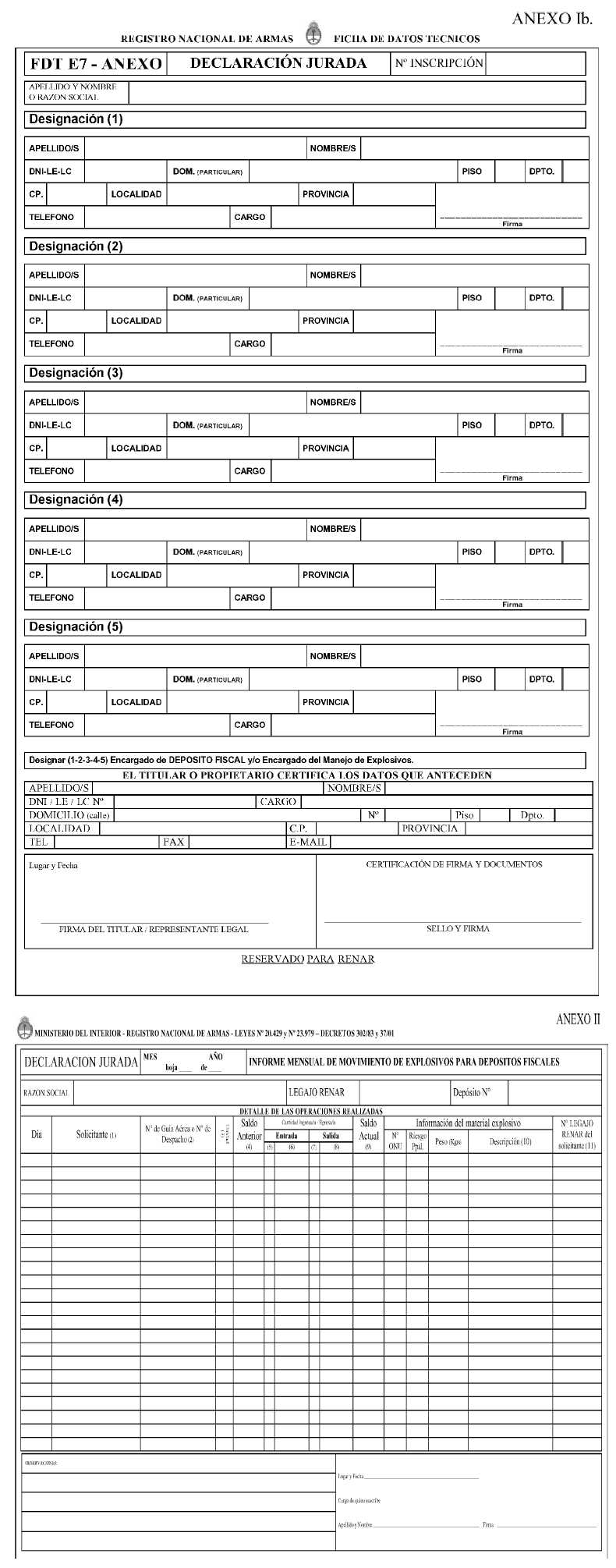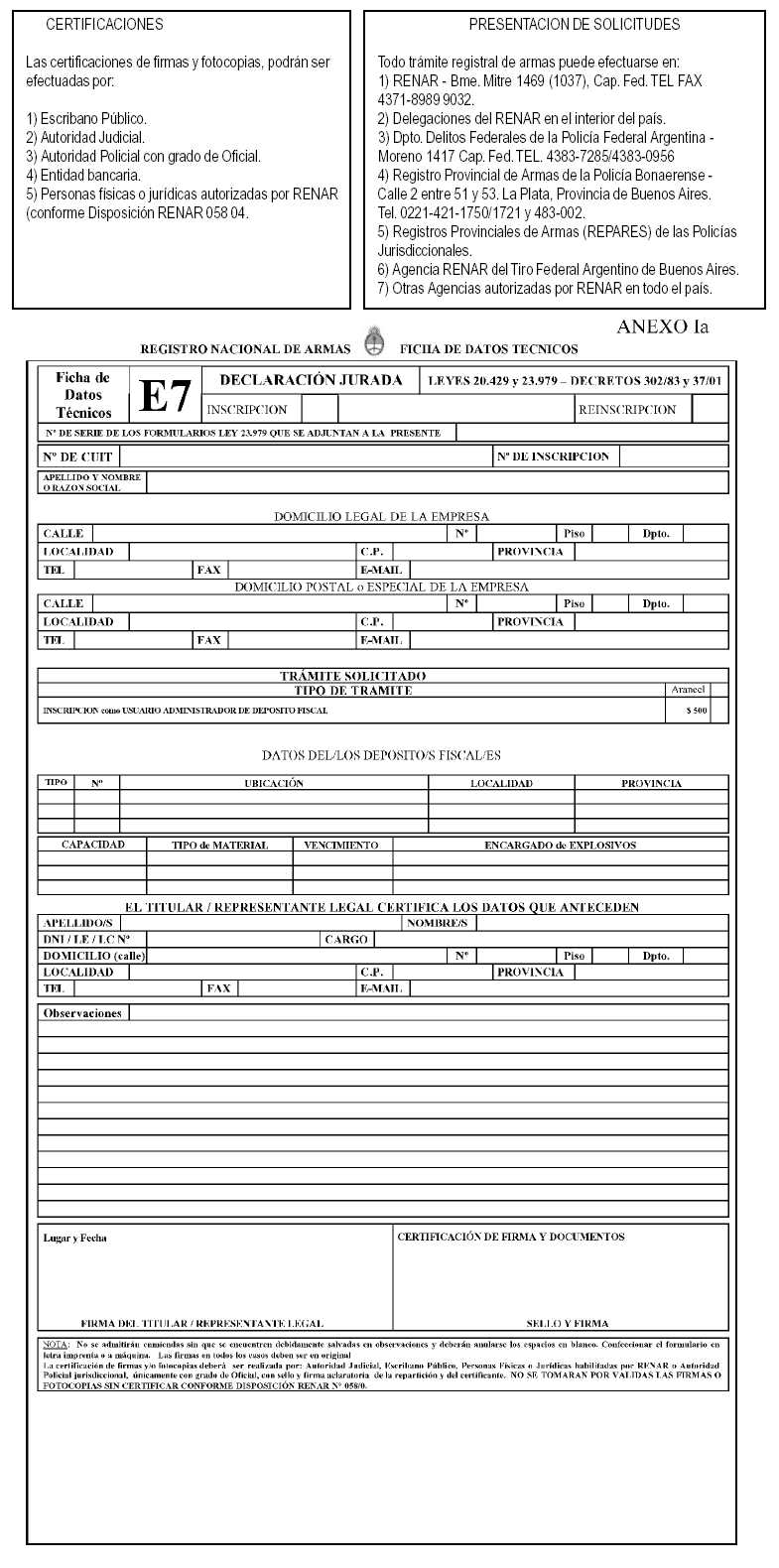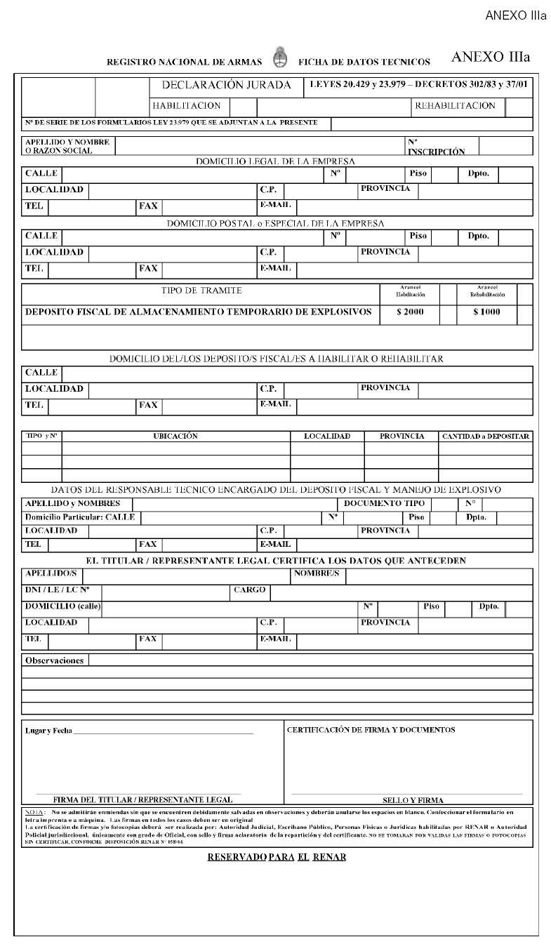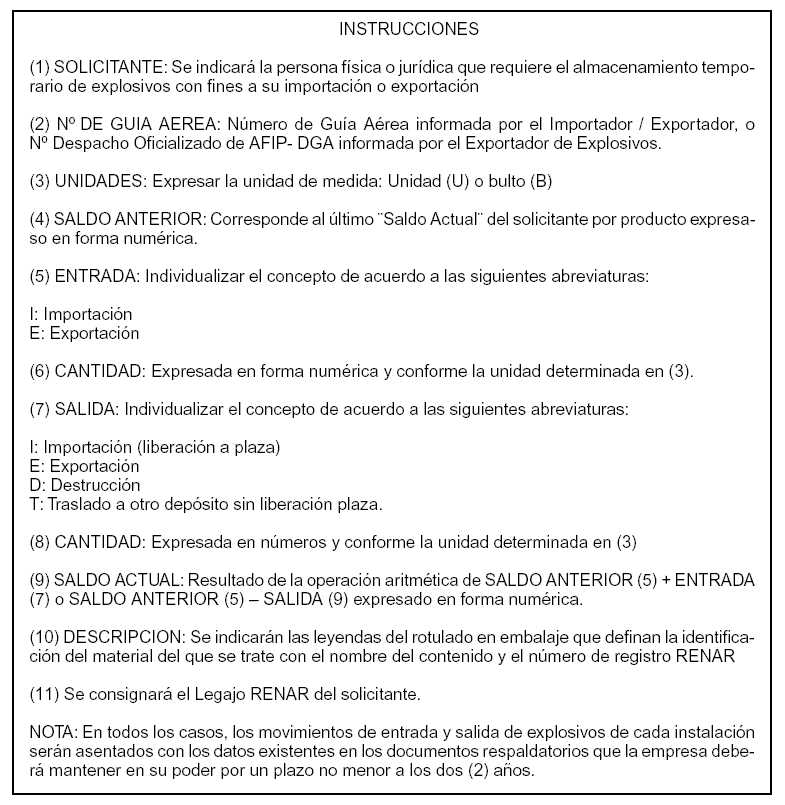 explosivo y toda otra referencia que les sea requerida por la autoridad de