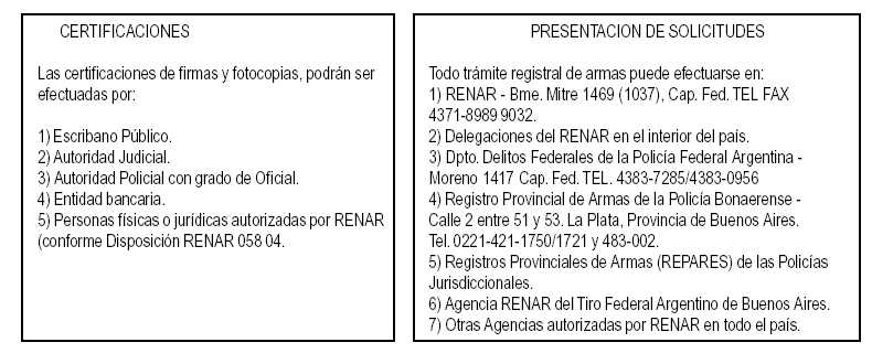 instalaciones debidamente habilitadas por este Registro Nacional de Armas, de